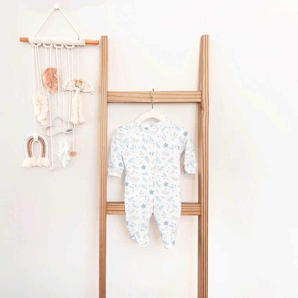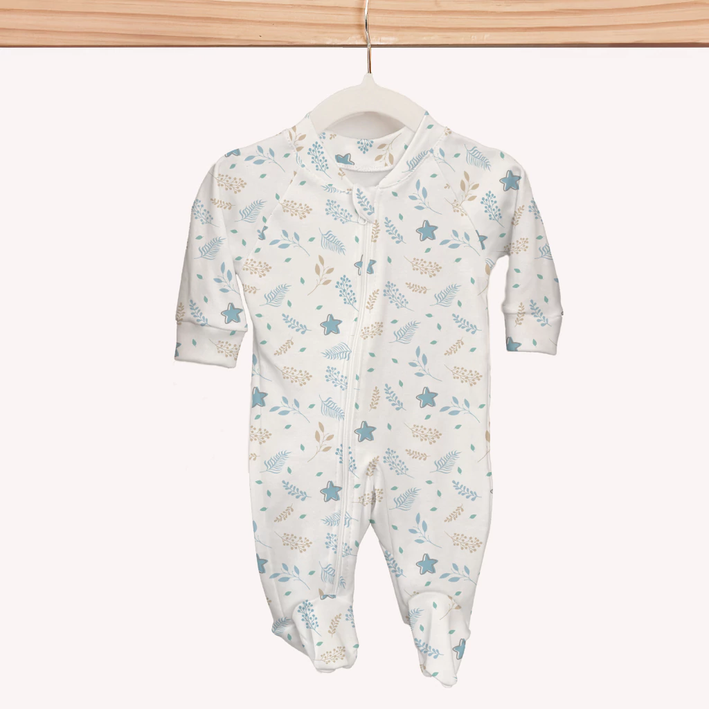 Macacão com Pezinho Algodão Egípcio | Estrelas & Folhas| Nuvem Cotton