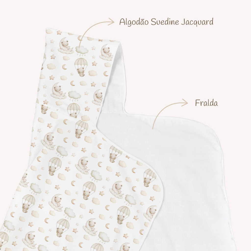 Sua estampa exclusiva traz charme e delicadeza para o enxoval, tornando o momento do banho ainda mais especial e aconchegante.